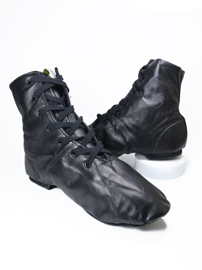 Високі джазівки з натуральної шкіри – професійне взуття для танців, яке поєднує комфорт, гнучкість та довговічність. Модель виконана з м’якої чорної шкіри, що добре адаптується під форму стопи та забезпечує свободу рухів. Завдяки високому силуету та шнурівці джазовки щільно фіксують щиколотку, надаючи додаткову підтримку під час інтенсивних занять і виступів.