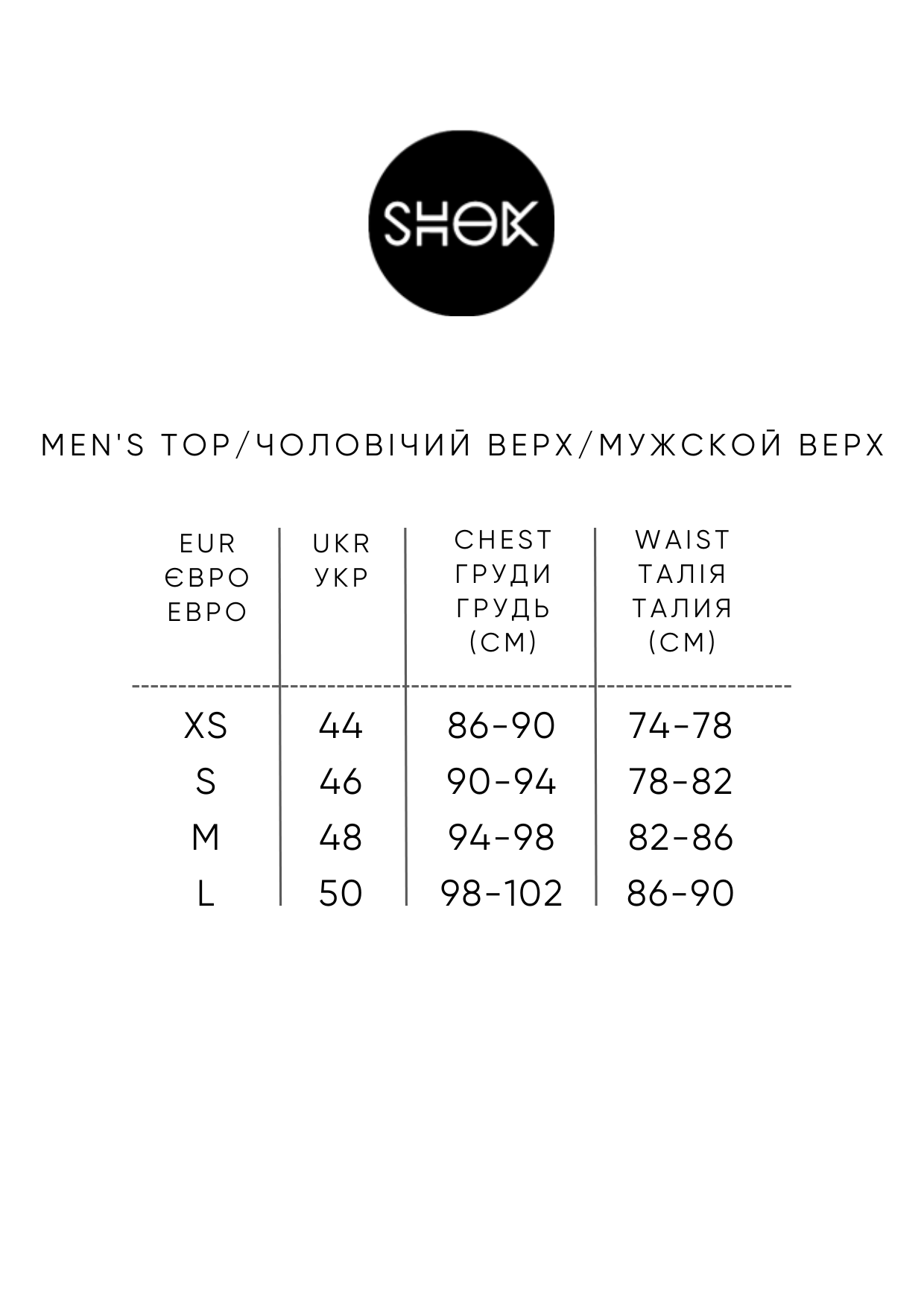Таблица размеров