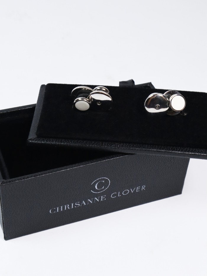 Эти пуговицы от Chrisanne Clover являются элегантным аксессуаром, предназначенным для фиксации съемного воротника на рубашке. Пуговицы имеют металлическую основу и украшены вставкой из перламутра, придающей им утонченный внешний вид. Доступны в вариантах цвета: золото-черный перламутр, серебро-черный перламутр, золото-перламутр и серебро-перламутр.